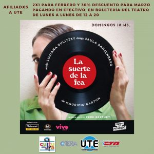 La suerte de la fea de Mauricio Kartun. Febrero: 2×1 – Marzo: 30% de descuento.