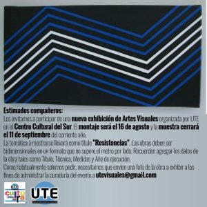 ARTISTAS DOCENTES DOCENTES ARTISTAS EXPOSICION ARTES VISUALES CENTRO CULTURAL DEL SUR – UTE 2018 [...]