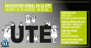 ENCUENTRO CORAL EN LA UTE. Viernes 25 de agosto – 19.30 Hs.