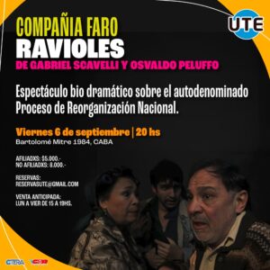 ✨COMPAÑIA FARO RAVIOLES de Gabriel Scavelli y Osvaldo Peluffo. 📍Viernes 6 de Septiembre 20hs. en [...]