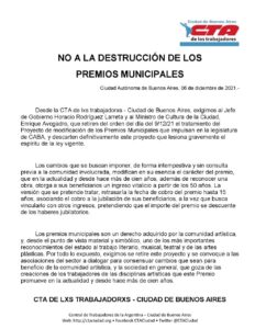 Estas medidas que busca aprobar el Gobierno en la Legislatura recortan derechos adquiridos de lxs artistas. De forma unilateral e inconsulta avanzan sobre los premios municipales históricos de reconocimiento del estado a la comunidad artística en sus diferentes disciplinas y lenguajes artísticos.