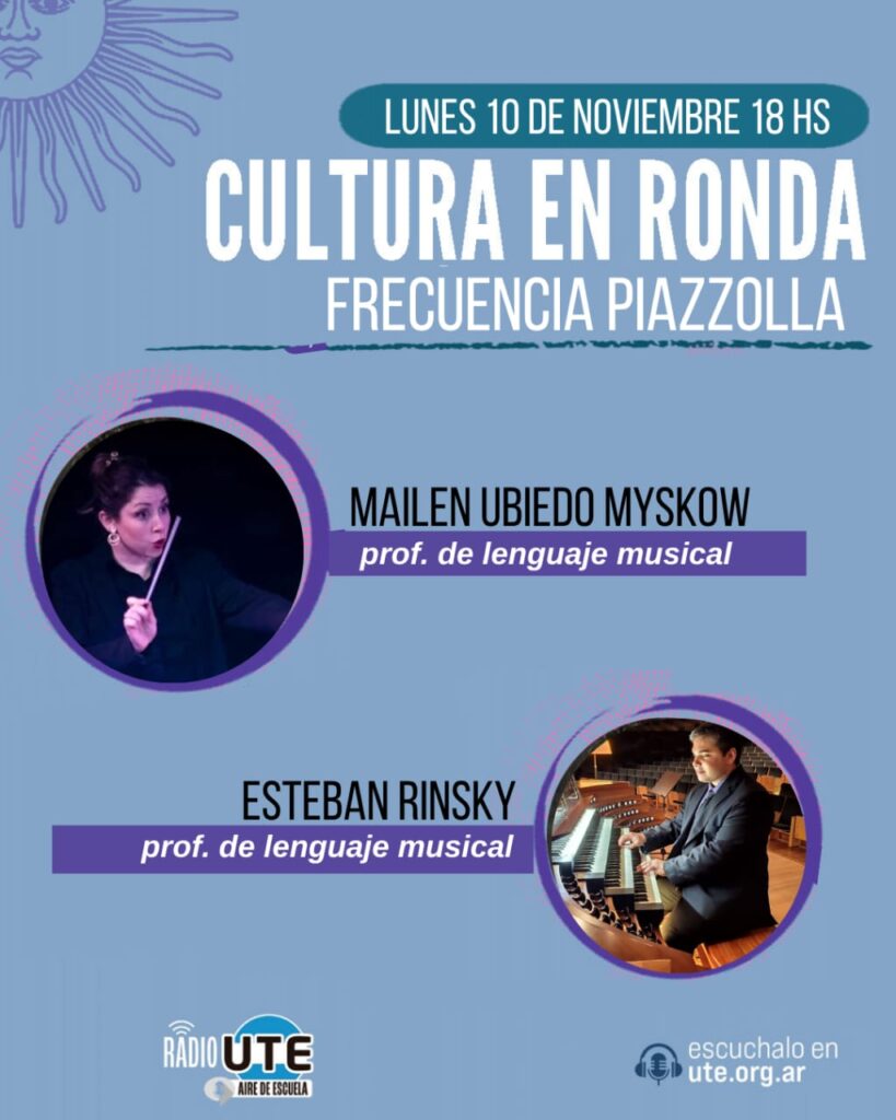 Cultura, Más Cultura, Notas y entrevistas, Noticias Destacadas, Sin categoríaCultura en Ronda. FRECUENCIA PIAZZOLLA 14 Nov ✨ Cultura en Ronda FRECUENCIA PIAZZOLLA Invitadxs: Prof. Mailén de Ubiedo Myskow y Prof. Esteban Rinsky Conducción: Marina Luppi y Javier Mazzocoli ➡️ Lunes 10/11 a las 18 h Por Radio UTE https://youtube.com/@radioute?si=MwLd2LAgb8H-piNc