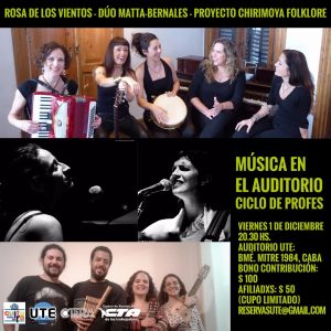 MÚSICA EN EL AUDITORIO. Ciclo de profes. Viernes 1 de Diciembre. 20:30hs