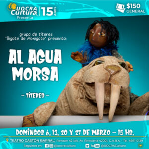 Al agua morsa Ficha artística:Intérpretes: Blanca Vega, Fernando Suárez, Mariel LewitanDiseño y realización de títeres [...]