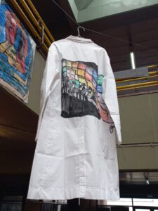 En el marco de la semana de la memoria, allí se exponen los guardapolvos intervenidos por les artistas