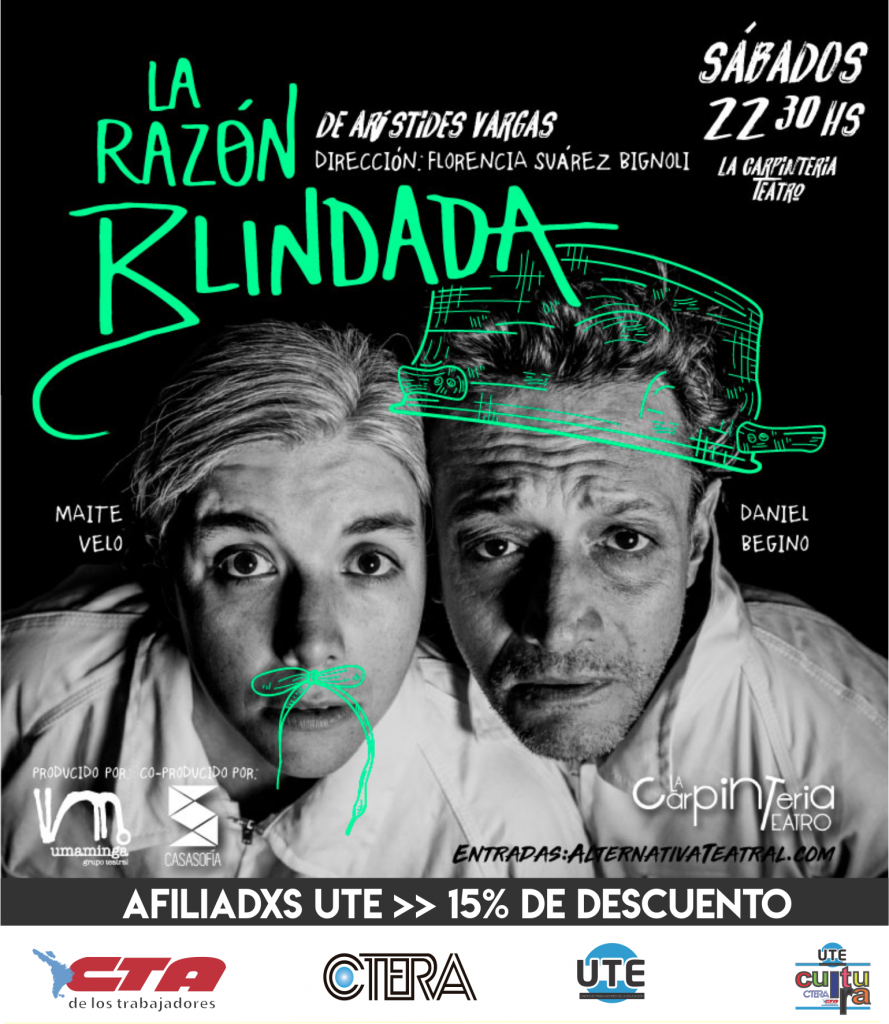 Desde el sábado 3 de agosto, a las 22.30 h, se presentará la obra La razón blindada, de Arístides Vargas, con las actuaciones de Maite Velo y Daniel Begino, bajo la dirección de Florencia Suárez Bignoli en La Carpintería Teatro. La obra está basada en la experiencia de Chicho Vargas (artista teatral, hermano del autor) y la de sus compañeros detenidos en la cárcel de Rawson durante la última dictadura cívico-militar, quienes se contaban historias para resistir el horror. La ficción no nace en la ficción.