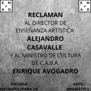 exigimos a la Dirección General de Enseñanza Artística y al Ministerio de Cultura de CABA, que den respuestas a los reclamos de docentes y estudiantes.