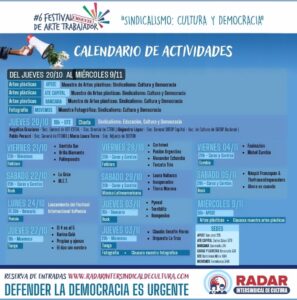 6to FESTIVAL DE ARTE TRABAJADOR SINDICALISMO: CULTURA Y DEMOCRACIA» TODA LA PROGRAMACIÓN Y RESERVA [...]