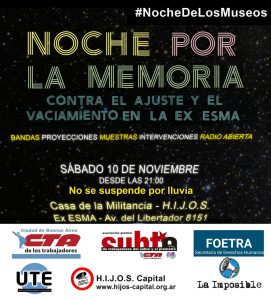 NOCHE POR LA MEMORIA – Sábado 10 de Noviembre – 21hs.