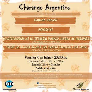 Charango Argentino en UTE – Viernes 6 de Julio – 20,30hs. A LA GORRA