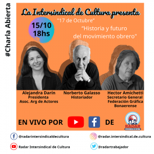 Radar la intersindical de cultura presenta: “17 de Octubre. Historia y futuro del movimiento obrero” – Jueves 15 de Octubre a las 18hs.