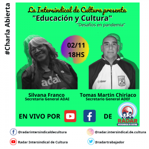 Radar la intersindical de cultura te invita a la charla abierta “Educación y Cultura” “Desafíos en pandemia” – Lunes 2 de Noviembre 18hs.