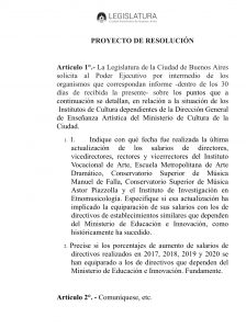 La Legislatura pide informe sobre equiparación salarial de directivxs de Cultura.