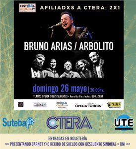 BRUNO ARIAS y ARBOLITO Afiliadxs a CTERA : 2 x 1 Presentando Carnet y/o [...]