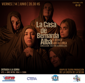 LA CASA DE BERNARDA ALBA de F. G. Lorca – Dirección: Héctor Alvarellos – Viernes 14 de Junio – 20:30hs.