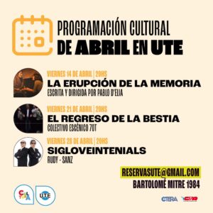 🎬🎭 Programación cultural de Abril en UTE 👉 Reservas: [email protected] 📌La erupción de la memoria [...]