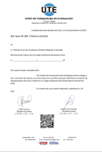 El pasado viernes 15 de septiembre la UTE solicitó una entrevista a la DGEART (Dirección [...]
