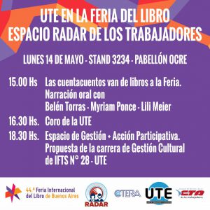 UTE en la 45º Feria Internacional del Libro de Bs As – Jueves 25 de Abril – Stand 154 (Pabellón Azul)