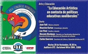 Arte y Educación en el XXIII Congreso Pedagógico. Martes 20/11 en UTE – 18:30hs.
